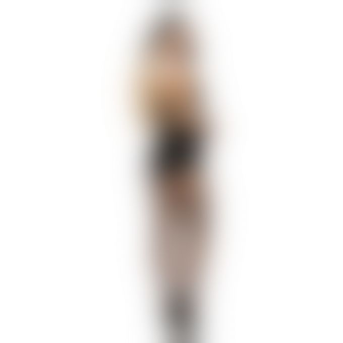 Чорно-білий дизайн із золотими акцентами підкреслює фігуру та створює зухвалий образ для рольових ігор. Панчохи в комплект не входять.