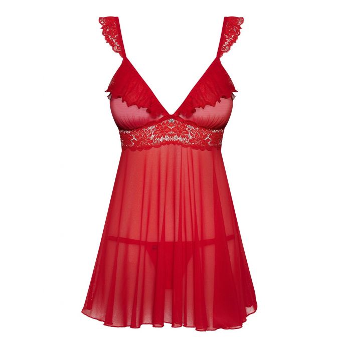 Опис Пеньюар - Obsessive 863-BAB-3 Babydoll & Thong Red S/M