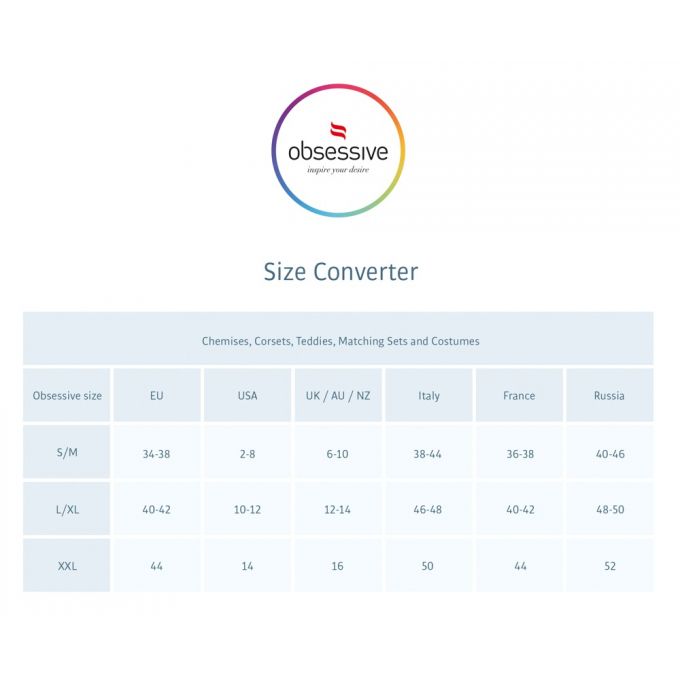 Obsessive - легендарний польський бренд, який спеціалізується на виготовленні високоякісних пеньюарів, боді, корсетів, комбінезонів, панчіх, поясів, трусиків і еротичних костюмів. Головний офіс і основна виробнича потужність Obsessive знаходяться в Польщі, між Краковом і Катовіце. У перекладі з ...
