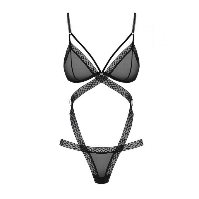 Це сексуальне боді створене для сміливих і яскравих образів. Модель поєднує в собі бюстгальтер і трусики з відкритою інтимною зоною. Тонкі ремінці з геометричним візерунком красиво облягають тіло, підкреслюючи силует. М’які трикутні чашки з вертикальними швами підкреслюють груди. Регульовані бретелі та застібка дозволяють точно підігнати боді по фігурі. Декоративні елементи на грудях і стегнах додають звабливості, а блискучі деталі – особливого характеру. Матеріал м’який, еластичний і приємний до тіла. Матеріал: 94% поліамід, 6% еластан.Характеристики Боді - Obsessive 855-TED-1 Body Black