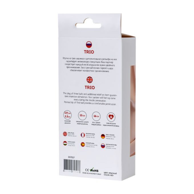 Опис Анальна пробка ToDo By Toyfa Trio, силікон, червона, 16 см, ø 3,3 см