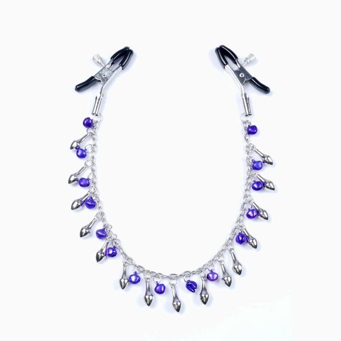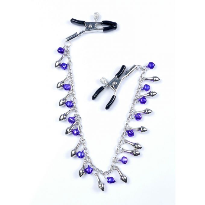 Ці затискачі для сосків стануть цікавим доповненням для інтимних експериментів. Металеві кліпси покриті м’якою гумою для комфортного та безпечного використання. Силу затиску можна регулювати за допомогою гвинта, підбираючи оптимальний тиск під свої вподобання. Кліпси з’єднані ланцюжком із дзвіночками та додатковими декоративними елементами, що робить їх не лише функціональними, а й візуально привабливими. Виготовлені без нікелю та шкідливих домішок, вони підходять як новачкам, так і досвідченим користувачам. Загальна довжина – 39 см. Вага – 30 г.Характеристики Затискачі для сосків - Exclusive Nipple Clamps No.2