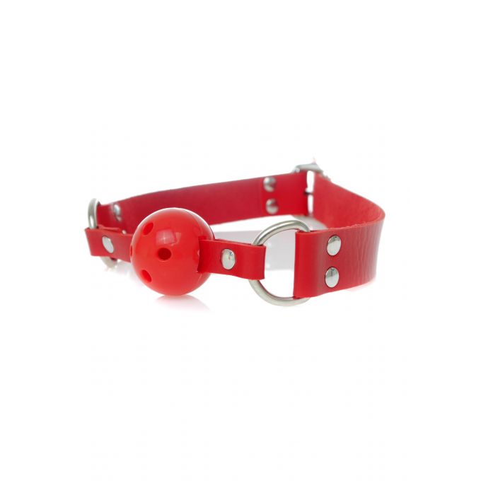 Кляп у вигляді невеликої гладкою кульки з отворами для вільного дихання. Широкий регульований ремінь виконаний з високоякісного гіпоалергенного матеріалу, декорований металевою фурнітурою, фіксується на застібку у вигляді пряжки. Аксесуар призначений для БДСМ-розваг.Характеристики Кляп - Ball Gag Red - Fetish Boss Series