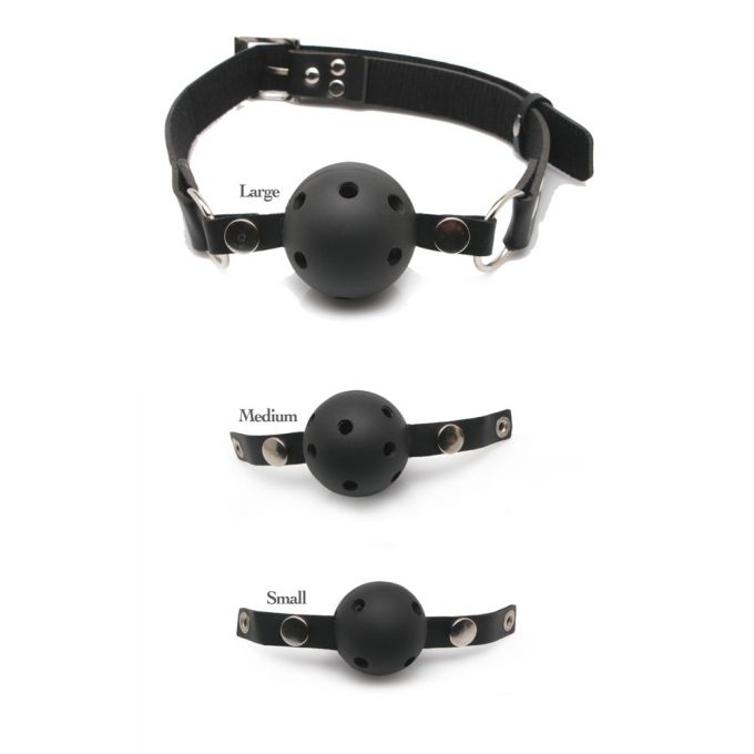 Ідеальний тренувальний набір для початківців з 4-х елементів: основний регульований ремінь з кляпом у формі кульки і три змінні кляпи з кульками у розмірах S, M і L. Кожна з кульок оснащена отворами для полегшення дихання. Затискачі з кульками можна швидко і легко замінити за допомогою кнопок на основному ремені. Набір виконаний з високоякісних, міцних та нетоксичних матеріалів.Характеристики Набір кляпів - FFS Ball Gag Training System