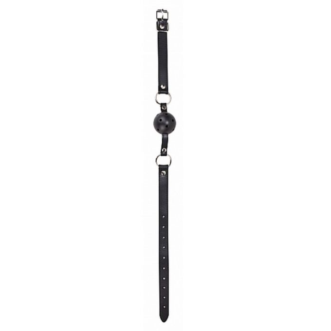 Стильний кляп із гладкою пластиковою кулькою (діаметром 4 см) з отворами для дихання. Надійно кріпиться на регульованому шкіряному ремінці з металевою фурнітурою. Ідеальний аксесуар для БДСМ-експериментів 🎭.