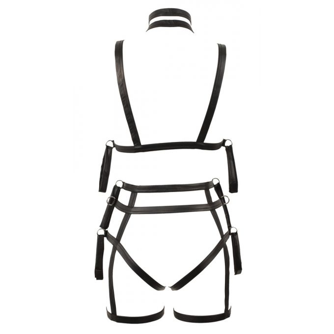 Комплект для бондажа, що складається з 2-х частин. Створено з тканинних смужок з мокрим ефектом, з'єднаних металевими кільцями. Верхня частина імітує торс, нижня трусики з фіксаторами для рук. Всі інтимні зони пікантно відкриті.Характеристики Набір для бондажу - 2492962 Bad Kitty Bondage Set