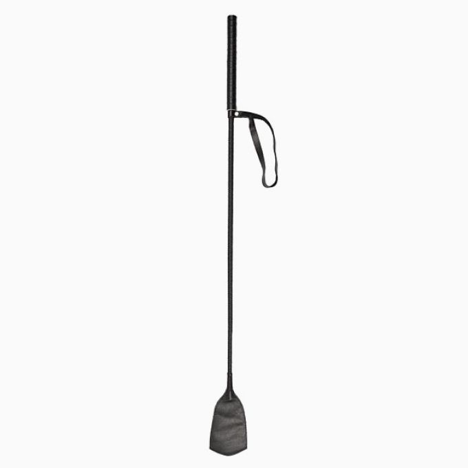Стильний стек з натуральної шкіри на тонкому гнучкому стержні з лопаткоподібним наконечником. Зручний ремінець на ручці дозволяє підвісити його на руку або гачок. Ідеальний аксесуар для БДСМ-розваг. Довжина 70 см, ширина 6 см.