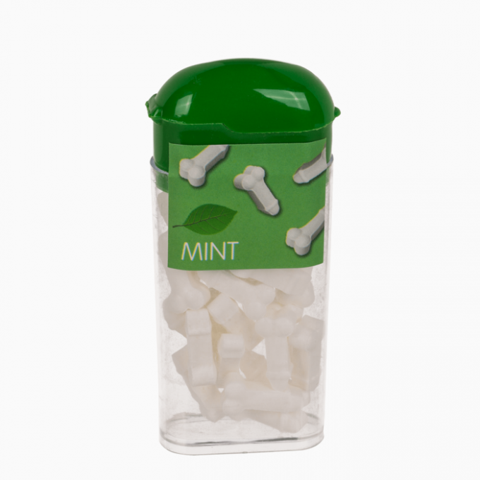 Оригинальные драже в форме маленьких белых пенисов с нежным ароматом и освежающим мятным вкусом. Идеальны для забавного подарка или украшения десертов на взрослых вечеринках. Вес упаковки: 18 г. 🍬🍃