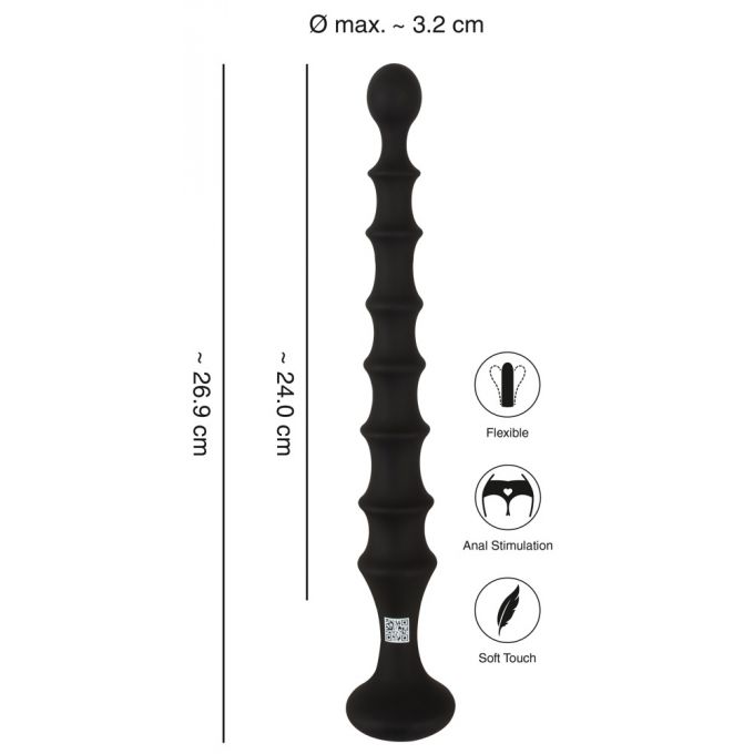 Надзвичайно гнучкий анальний стимулятор з високоякісного гіпоалергенного силікону. Гладкий заокруглений кінчик забезпечить приємне приникнення, а ребриста робоча частина подарує яскраву чуттєву стимуляцію. Основа стимулятора розширена, завдячи чому він не проникне надто глибоко у тіло. Сумісний з лубрикантами на водній основі. Загальна довжина - 26.9 см, робоча довжина - 24 см, діаметр - 3.2 смХарактеристики Анальний стимулятор - Magic Anal Wand No.2 Black