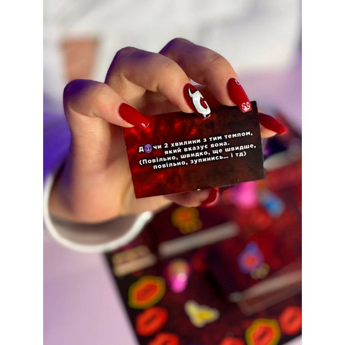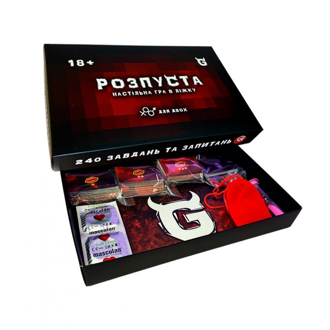 Розпуста - це настільна гра в ліжку для двох, яку неможливо закінчити… Але можливо закінчити. Це 240 інтимних завдань та запитань у 4 категоріях («Правда», «Дія», «Для нього», «Для неї»), 20 карток ускладнень та 3 рівні складності! (Від легкого, до пекельного). «Кидаєш кубик - виконуєш завдання!» А з деталями правил ознайомитесь вже у грі. Характеристики: Тематика: Еротичні. Кількість гравців: 2. Вік: 18+. Мова: Українська. Розмір упаковки: 30х19х4см. Комплектація: Ігрове поле, 260 карточок, Кубики та фішки, Правила, Пісочний годинник, Презервативи, Волога серветка. Виробник: ТОЧКА GAMES (Україна)Характеристики Настільна гра "Розпуста"