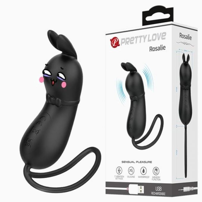 Незвичне віброяйце у вигляді кролика, виконане у чорному кольорі з оксамитового силікону, безпечного для здоров'я та приємного на дотик. Має довгасту ергономічну форму та округлу головку з пружними вушками, в основі міцна петелька зручності користування. Вушка ідеально підходять для точкової стимуляції ерогенних зон.Характеристики Вібростимулятор - Pretty Love Rosalie Vibro Stimulator Black
