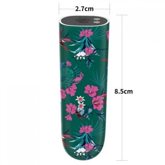 Компактний точковий вібростимулятор в ефектному дизайні, адже на зовнішній поверхні має розкішний квітковий принт, що робить секс-іграшку справжнім витвором мистецтва. Ідеально підійде для ефективної точкової стимуляції та ніжного масажу зовнішніх ерогенних точок (клітор, соски, мошонка, тощо). Функціонал цього малюка налічує 10 швидкісних режимів. Довжина - 8 см, діаметр - 2.7 см.Характеристики Вібропуля - Rechargeable Antheia Massager