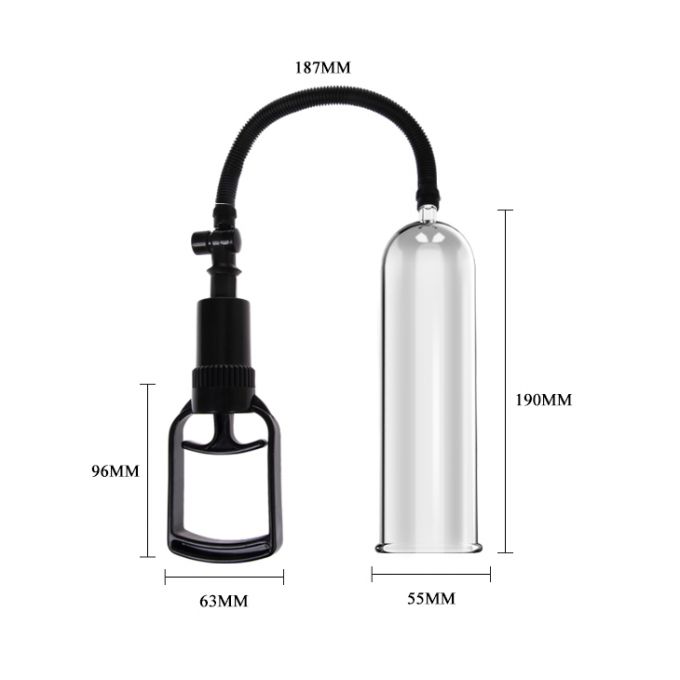 Помпа для чоловіків. Виготовлена з ПВХ, оснащена різного роду насадками з силікону і матеріалу TPR нагадує людську шкіру. Зволожуючий гель в комплекті. Розміри: довжина 19 см, діаметр 5,5 см.Характеристики Вакуумна помпа - Penis Pump