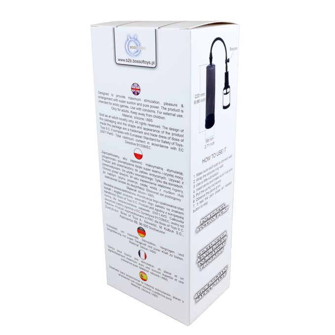 Чоловіча вакуумна помпа з прозорим циліндром і вимірювальною шкалою. Виготовлена з гіпоалергенних матеріалів, має зручний механізм відкачування повітря.