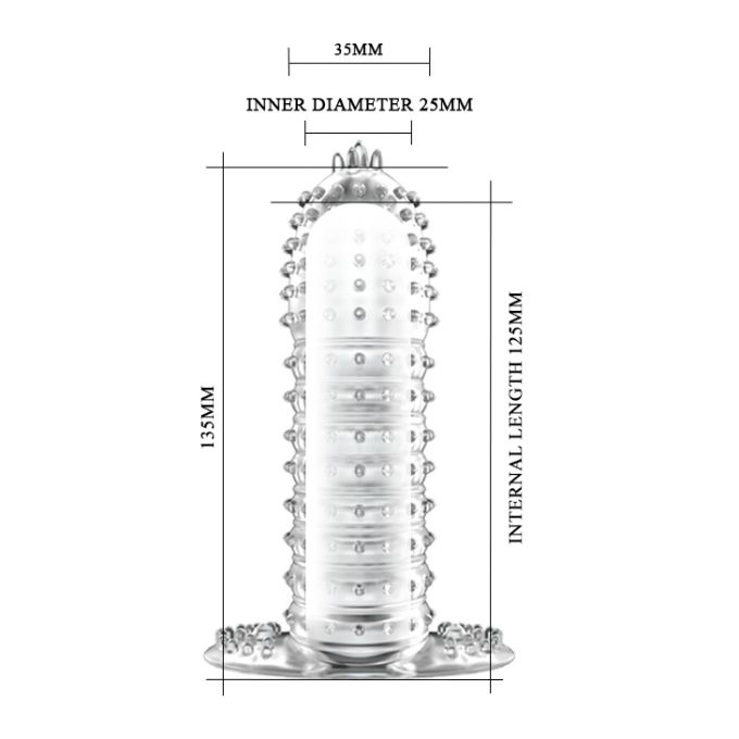 Силіконова, еластична насадка-подовжувач на пеніс. Колір: прозорий. Розміри: довжина: 13,5 см, діаметр: 3,5 см.Характеристики Насадка на член - Penis Sleeve, 13.5 см