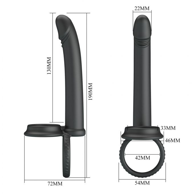 Силіконова насадка на пеніс з подвійною фіксацією. Виконана в чорному кольорі з гіпоалергенного медичного силікону, оснащена звуженим кінчиком та гладким, злегка вигнутим стовбуром. Ідеально підходить для подвійного проникнення. Загальна довжина - 19 см.Характеристики Кільце-насадка для подвійного проникнення - Pretty Love Moses