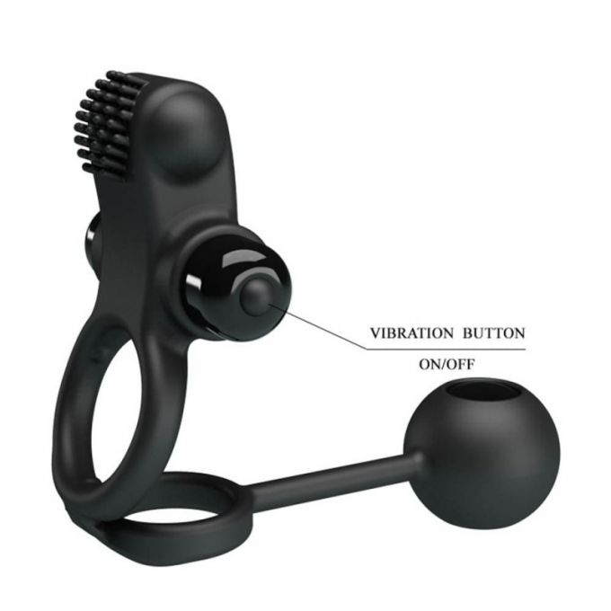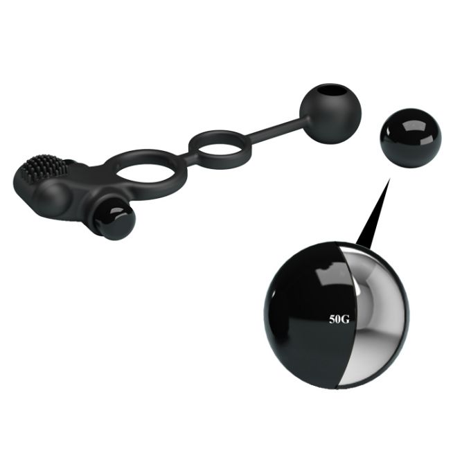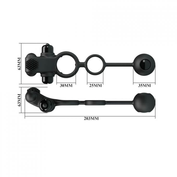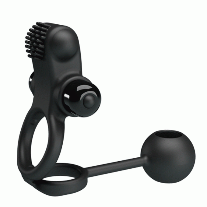 Подвійне ерекційне кільце, виконане в чорному кольорі з м'якого і еластичного силікону. Додатково іграшка оснащена віброелементами для стимуляції партнерки, на кінці спеціальний кулька зі змінним центром ваги, який при русі створює приємні вібрації. Кільця щільно охоплюють пеніс і мошонку, перешкоджають відтоку крові, тим самим роблять його більш міцним і витривалим. Довжина - 20,3 см, діаметр - 2,5-3,5 смХарактеристики Ерекційне кільце - Pretty Love Vibration Penis Sleeve IV Black