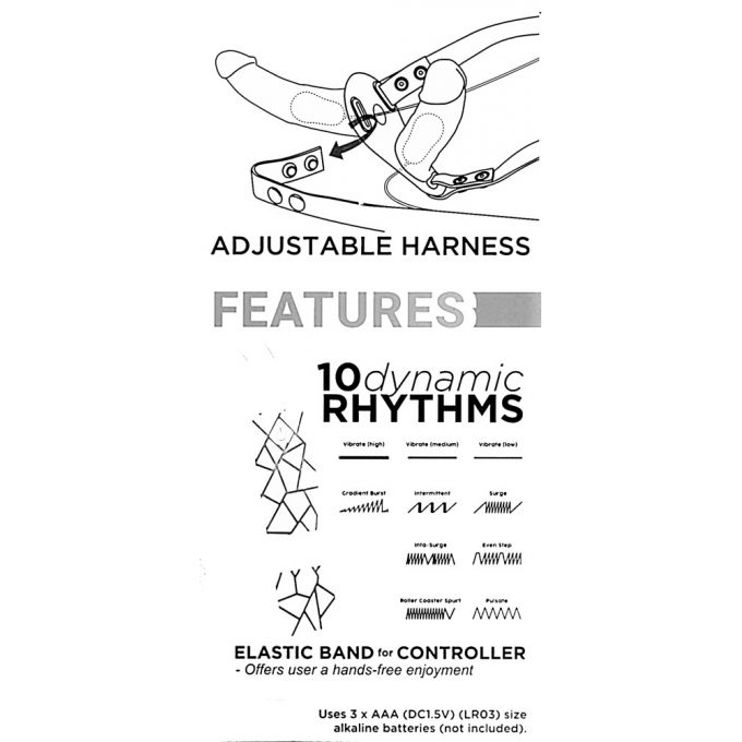 Подвійний страпон з якісного гнучкого матеріалу. Виріб з двома чорними фаллоімітатором реалістичного зовнішнього вигляду. Фалоси мають яскраво виражені головки, рельєфні стволи і складки. Ремінь страпона зручно регулюється і міцно тримає два фалоса. Іграшка оснащена вбудованими віброелементами з 10 режимами роботи і виносним пультом управління.Характеристики Жіночий страпон - Double Thruster