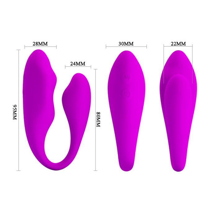 Вібратор для пар V-подібної форми. Зроблено в рожевому кольорі з високоякісного силікону, приємного на дотик. Іграшка гнучка і зручна у використанні, дозволяє займатися сексом будучи введеним в дівчину, також можна використовувати для стимуляції клітора і точки "G". Оснащений 2 моторчиками і 12 різними режимами роботи, якими легко керувати на дистанційному пульті управління. Довжина - 8-9,5 см, діаметр - 2,2-2,8 см.Характеристики Вібратор - Pretty Love Bernie Stimulator Purple