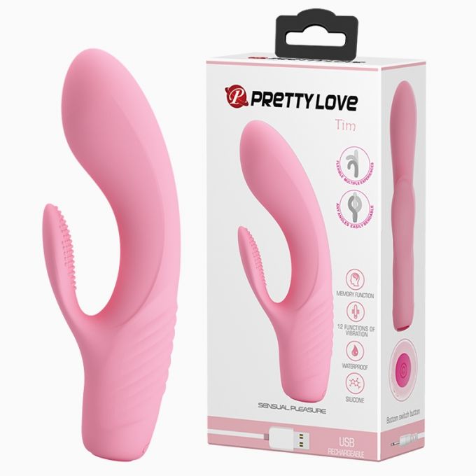 Ергономічний вібратор ніжно-рожевого кольору в сучасному дизайні для одночасної стимуляції точки "G" і клітора. Виготовлений з високоякісного силіконового матеріалу. Кліторний відросток має на поверхні м'які шипи для більш приємних відчуттів. 12 варіантами вібрації легко керувати за допомогою однієї кнопки в нижній частині корпусу. Загальна довжина - 15,5 см, діаметр - 3,5 см.Характеристики Вібратор - Pretty Love Tim Vibrator Light Pink
