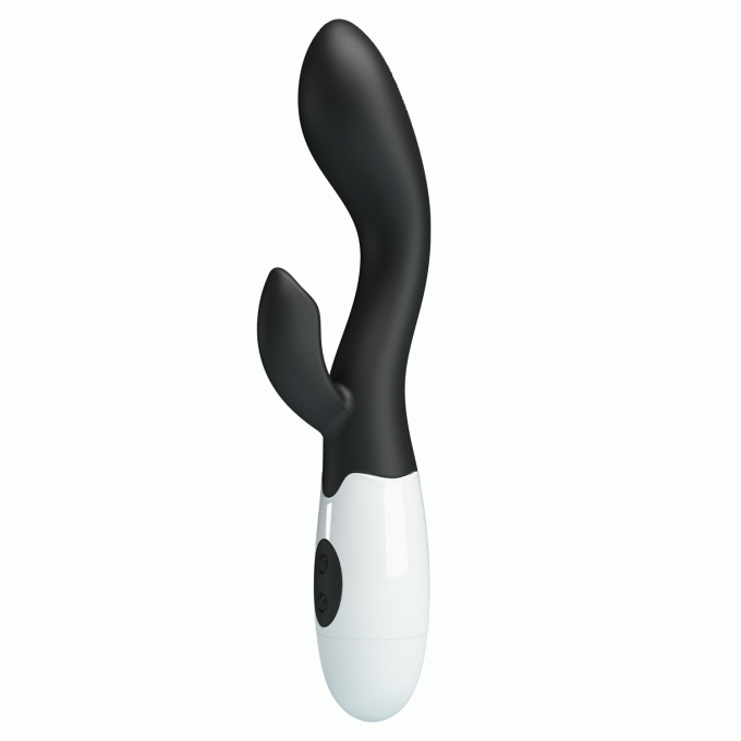 Силіконовий вібратор з додатковим стимулятором клітора. Має 30 - плавних вібрацій. Розміри: довжина: 20 см, діаметр: 3,4 см. Живлення: батарейки 2xAAA - немає в комплекті.Характеристики Вібратор - Pretty Love Brighty Vibrator Black