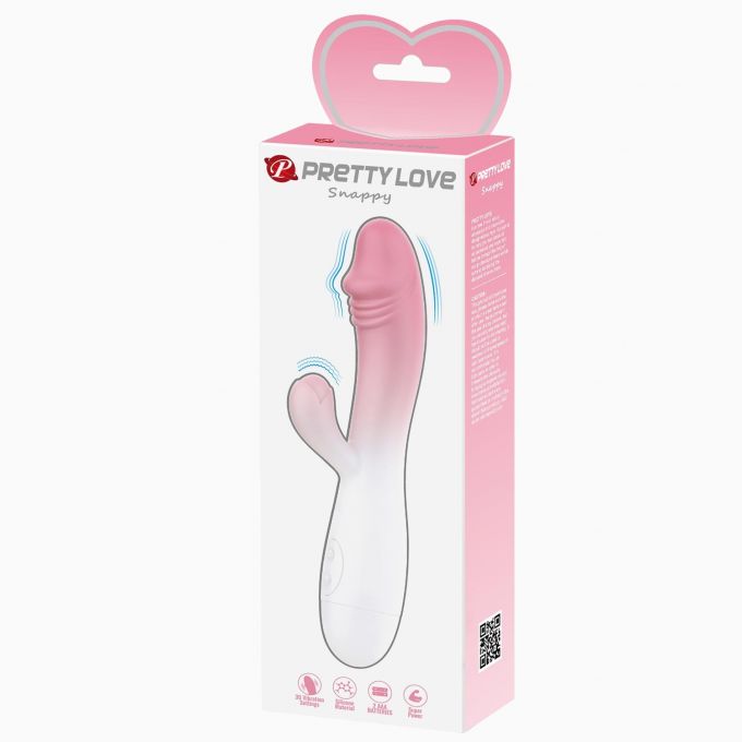Вібратор виконаний з високоякісного силікону з бархатистою поверхнею. Має реалістичну головку, складки на стовбурі і відросток для стимуляції клітора. Управління вібрацією здійснюється на вбудованому пульті управління. Довжина - 19 см, діаметр - 3,2 см.Характеристики PRETTY LOVE - SNAPPY, light pink, 30 vibration functions