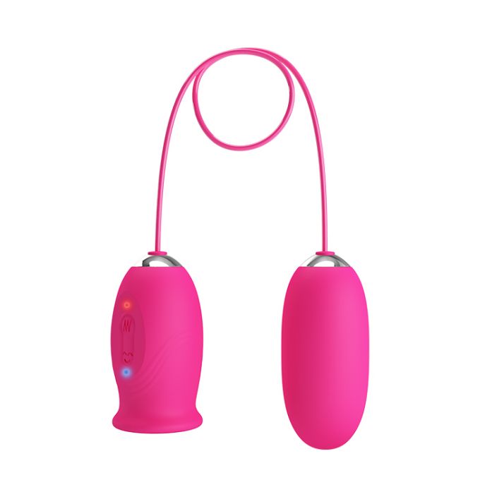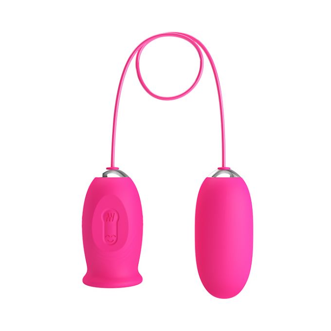 Віброяйце рожевого кольору з м'якого гіпоалергенного силікону, безпечного для здоров'я. Має класичну довгасту форму і гладку поверхню. Застосовується для тренувань м'язів піхви. Контроль і управління 12 варіантами вібрації здійснюється на дистанційному пульті, який оснащений рухомим язичком з 3 режимами роботи для додаткової стимуляції.Характеристики Кліторальний стимулятор з віброяйцем - Pretty Love Daisy Licking Vibrator Pink
