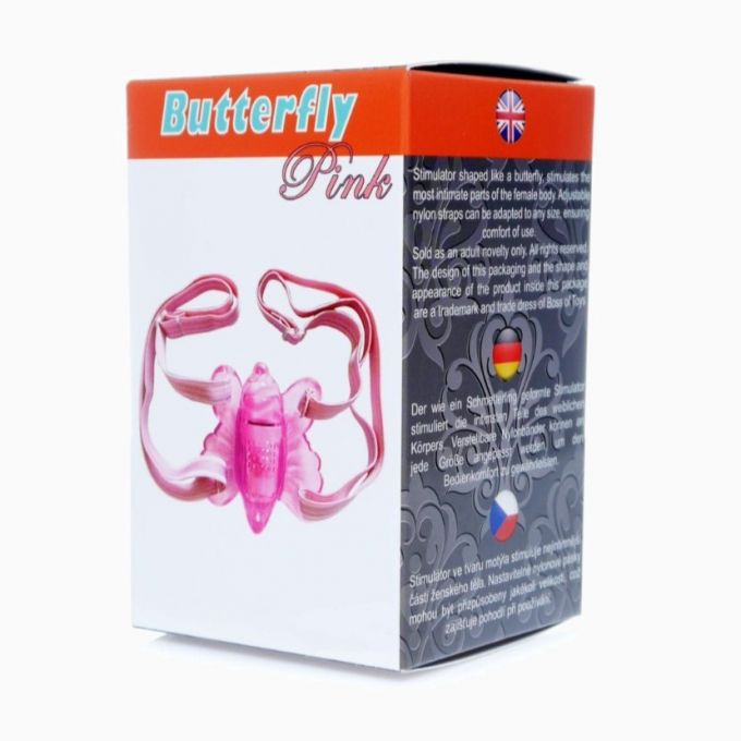 Оригінальний вібростимулятор клітора у вигляді метелика з рельєфним тільцем та крильцями. Середня частина тільця вкрита додатковх стимулюючим рельєфом у вигляді опуклостей. У кожному із крилець є невеликі отвори, через які до девайсу прикріплюються регульовані нейлонові ремені, щоб надійно зафіксувати стимулятор на тілі. Віброелемент забезпечує 1 режим швидкості.Характеристики Вібростимулятор - Butterfly Pink