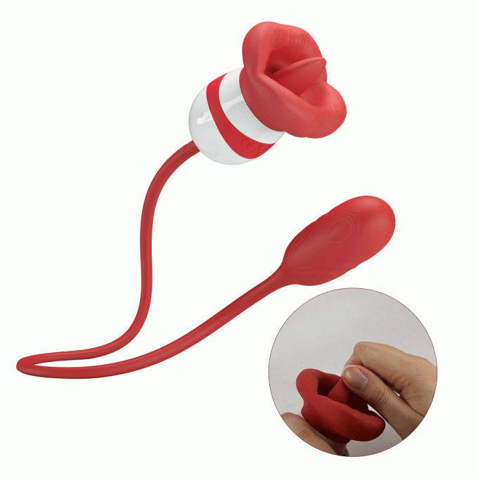 Оригінальний девайс з двома робочими сторонами: одна імітує відкритий рот з рухомим язичком, інша виконана у вигляді віброяйця з гладкою безшовною поверхнею. Функціонал іграшки включає 5 віброрежимів язика та 5 програм пульсації яйця і керується за допомогою однієї кнопки на ергономічному корпусі. Ідеально підійде для одночасної вагінально-кліторальної стимуляції, також для чуттєвого масажу зовнішніх ерогенних зон, таких як соски, мошонка, тощо. Загальна довжина - 45 см, діаметр - 3.3 см.Характеристики Кліторальний стимулятор - Pretty Love Aliyah