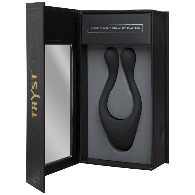 Можна використати як ерекційне кільце для пеніса, як стимулятор сосків, клітора або як вібратор в іграх соло. Він був удостоєний нагороди "Секс-іграшка місяця" за версією Cosmopolitan. Doc Johnson Tryst виконаний з бархатистого медичного силікону і оснащений 3 потужними моторчиками (один в основі і ще по одному на кінцях "ручок"), які працюють незалежно один від одного. Вібратор має ергономічну форму і розміри (загальна довжина 135 мм, довжина 75 мм, що вводиться), а 7 різних режимів вібрації подарують незабутнє задоволення.