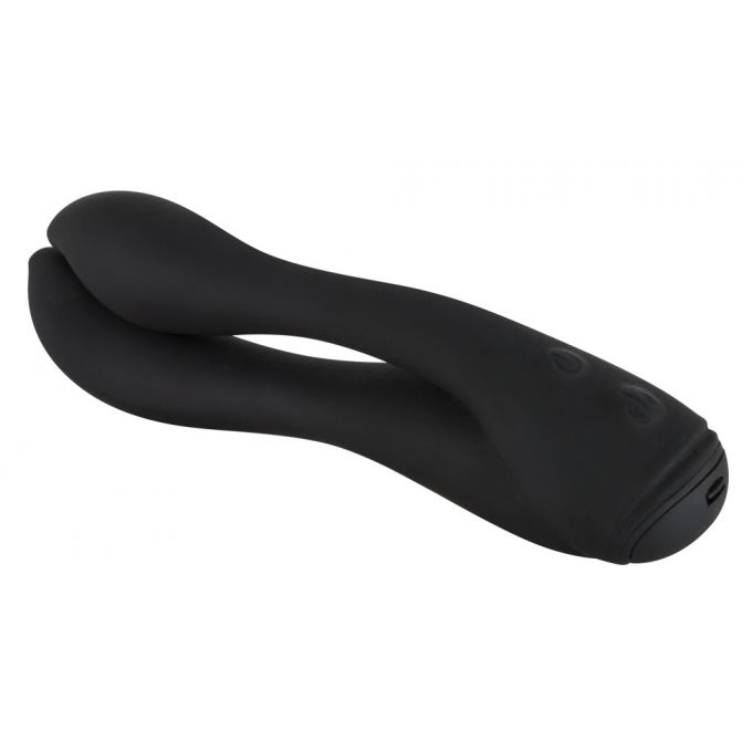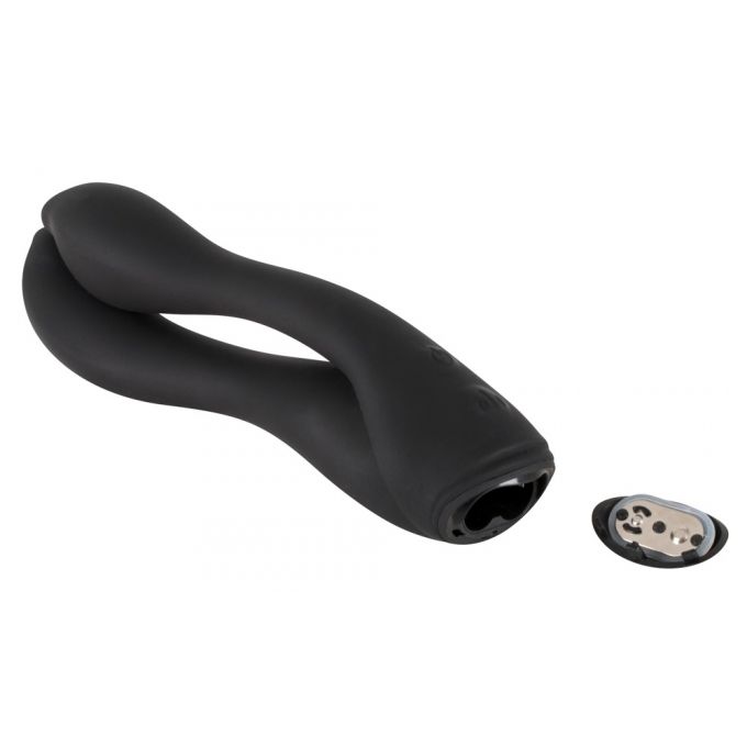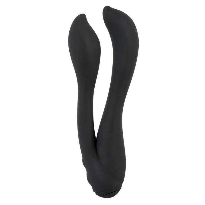 Подвійний вібромасажер для ефективної стимуляції анусу і вагины. Виконаний в чорному кольорі з високоякісного силіконового матеріалу, безпечного для здоров'я. Має ексклюзивний дизайн, ергономічну форму і 7 режимів потужної вібрації. Довжина - 17 см, діаметр - 5,1 см