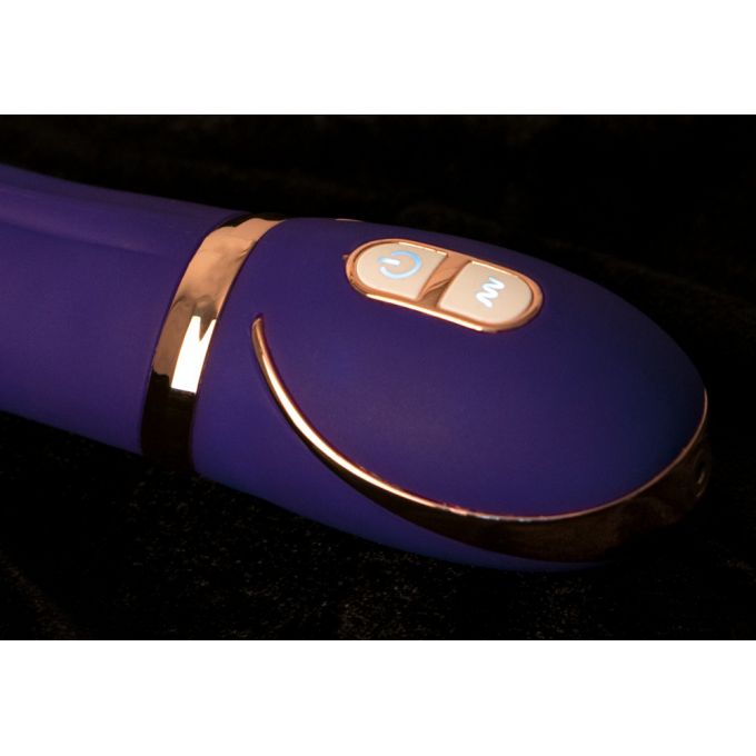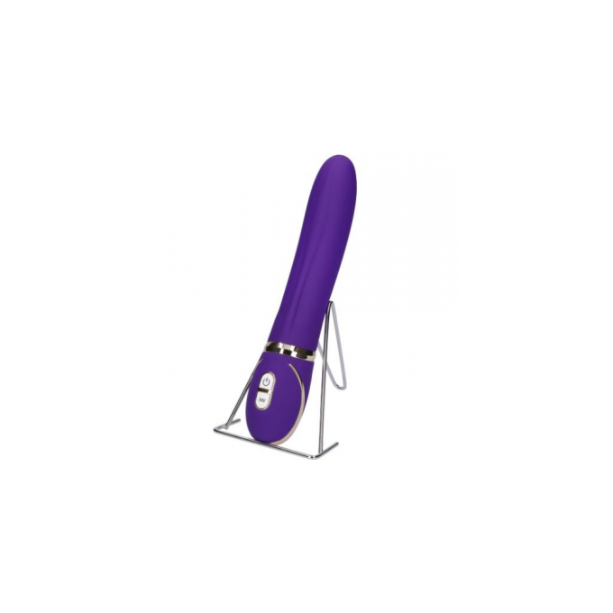Красивий фіолетовий вібратор з декоративною сріблястою обробкою. Оснащений гладким прямим стволом з вертикальною рельєфною лінією для додаткової стимуляції. Має 7 режимів вібрації, якими легко управляти за допомогою кнопок на підставі іграшки. Довжина - 22 см, робоча довжина - 14 см, діаметр - 3,2-3,4 см Працює від акумулятора.