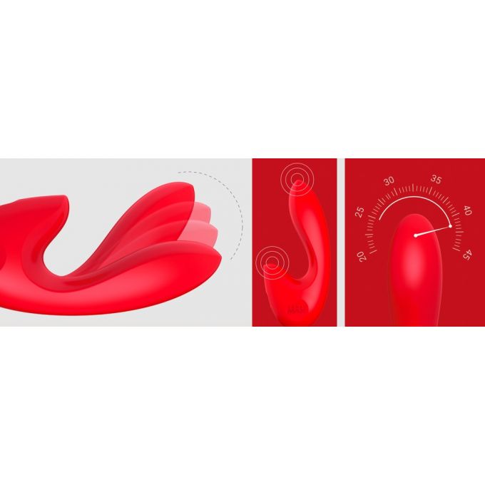 Ергономічний вібратор, що перезаряджається, в сучасному дизайні для одночасної стимуляції точки "G" і клітора. Виготовлений в червоному кольорі з високоякісного силікону, приємного на дотик. Має два потужні моторчики, 8 різних режимів і 12 рівнів вібрації, якими легко управляти за допомогою кнопок в нижній частині корпусу. У комплекті спеціальна коробочка для зберігання. Загальна довжина - 16 см, діаметр - 3,7 см