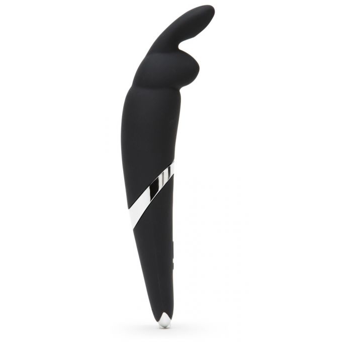 Стильний вібратор у вигляді кролика із забавними вушками. Зроблений в чорному кольорі з бархатистого силікону високої якості. Іграшка має 30 режимів роботи, які регулюються кнопками в основі. Довжина - 27 см, діаметр - 47 см