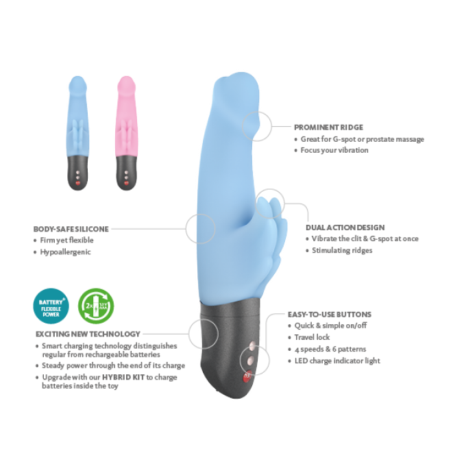 Новинка! Лінійка вібраторів Battery+ зі збільшеною потужністю вібрації. Працюють як від батарей так і від акумуляторів (продаються окремо в наборі Hybrid Kit). Унікальна технологія зарядки прямо усередині вібратора розрізняє акумулятори від батарей. Краще з двох світів - усі переваги батареечного вібратора без недоліків батарей!