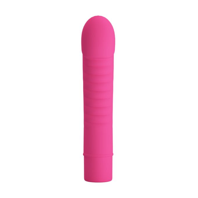Водонепроникний вібратор рожевого кольору. Зроблений з гіпоалергенного бархатистого силікону високої якості. Має злегка загнуту гладку голівку для масажу точки "G" і стимулюючий рельєф на стволі. 10 режимами вібрації легко управляти в основі виробу. Довжина - 13 см, діаметр - 2,7 см
